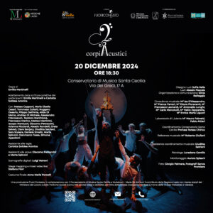 Lo spettacolo Corpi Acustici in scena il 20 dicembre alle 18:30 presso la Sala Accademica del Conservatorio di Musica Santa Cecilia di Roma. Uno spettacolo di teatro, musica e danza con un gruppo integrato di persone con e senza disabilità, uniti da un unico comune denominatore, l’espressione artistica: musica, parola, danza.